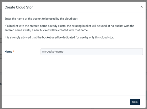 4. In the Create Cloud Stor window,