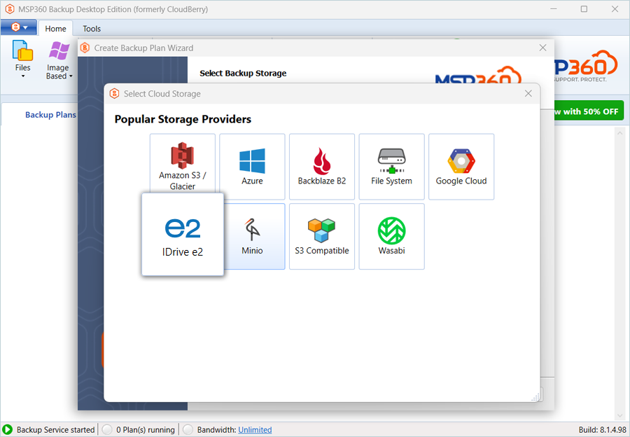 MSP360, formerly known as CloudBerry Lab, is a comprehensive backup and IT management platform for MSPs and IT teams, offering image and file-level backup, centralized management, ransomware protection, and remote access across diverse environments. It supports a bring-your-own-storage model with broad cloud integrations. Integrating MSP360 with IDrive® e2 extends these capabilities with a capable and scalable cloud object storage solution that facilitates systematic integration for secure and efficient data protection.